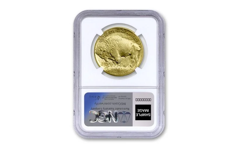 Each 2025 One-Ounce Gold Buffalo in this offer has been graded by the Numismatic Guaranty Company as being in flawless Mint State-70 condition, a distinction that means your perfectly-graded coin will have ZERO imperfections—showing all features and fields exactly as the engraver and mint intended. In addition, has certified that these Gold Buffalos are First Day of Issue (FDI) coins, a designation that means they were received by or an -approved depository by the release date or on the business day within 24 hours of the official release date. Collectors seek out these coins because they are produced with new dies and considered to have sharper strikes and deeper mirrors than those that are struck later. Also, the population of commemorative coins labeled First Day of Issue is only a fraction of the total mintage.