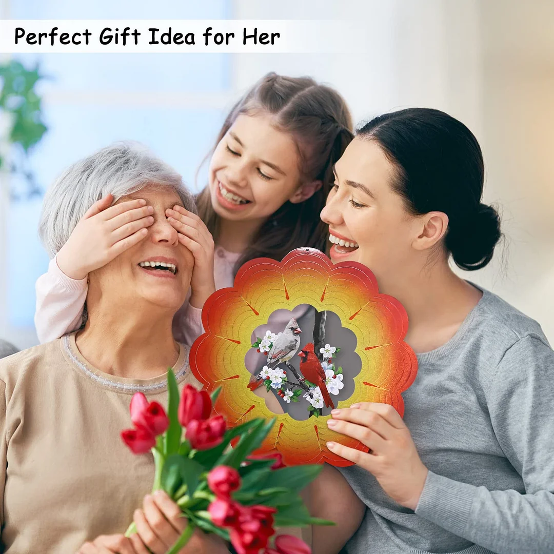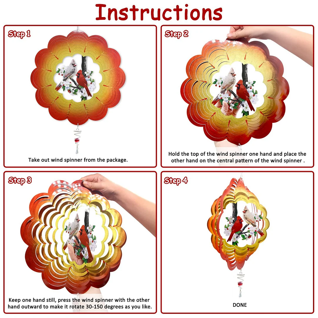 When the shiny wind spinner rotates, the multi-layer color will form the visual effect of 3D cardinal and flower