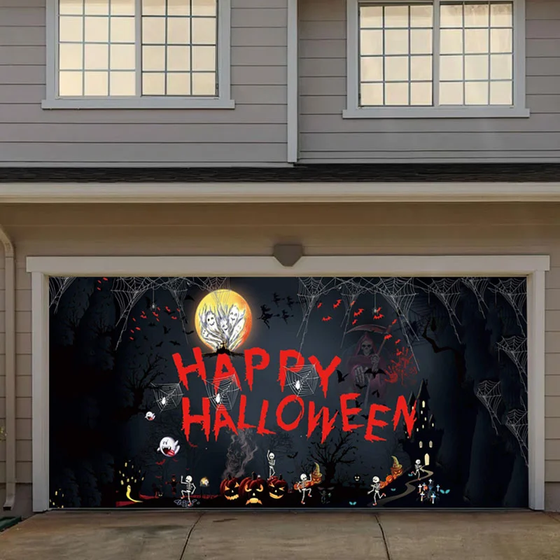 This year, we're making your Halloween a real treat! Get the gazers' hair standing with this Halloween themed garage door banner! A mural that can be hung on your garage door in just a matter of minutes, the components flex while the door goes up and down. Where there are no fun imaginative color designs, there is no horror!