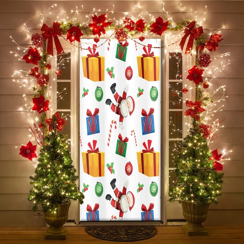 For all your front door Christmas decorations this year check out our incredible selection of door covers. This fabric door wrap will look amazing hanging outside or inside this holiday season. Our fabric door covers take less than a minute to install.