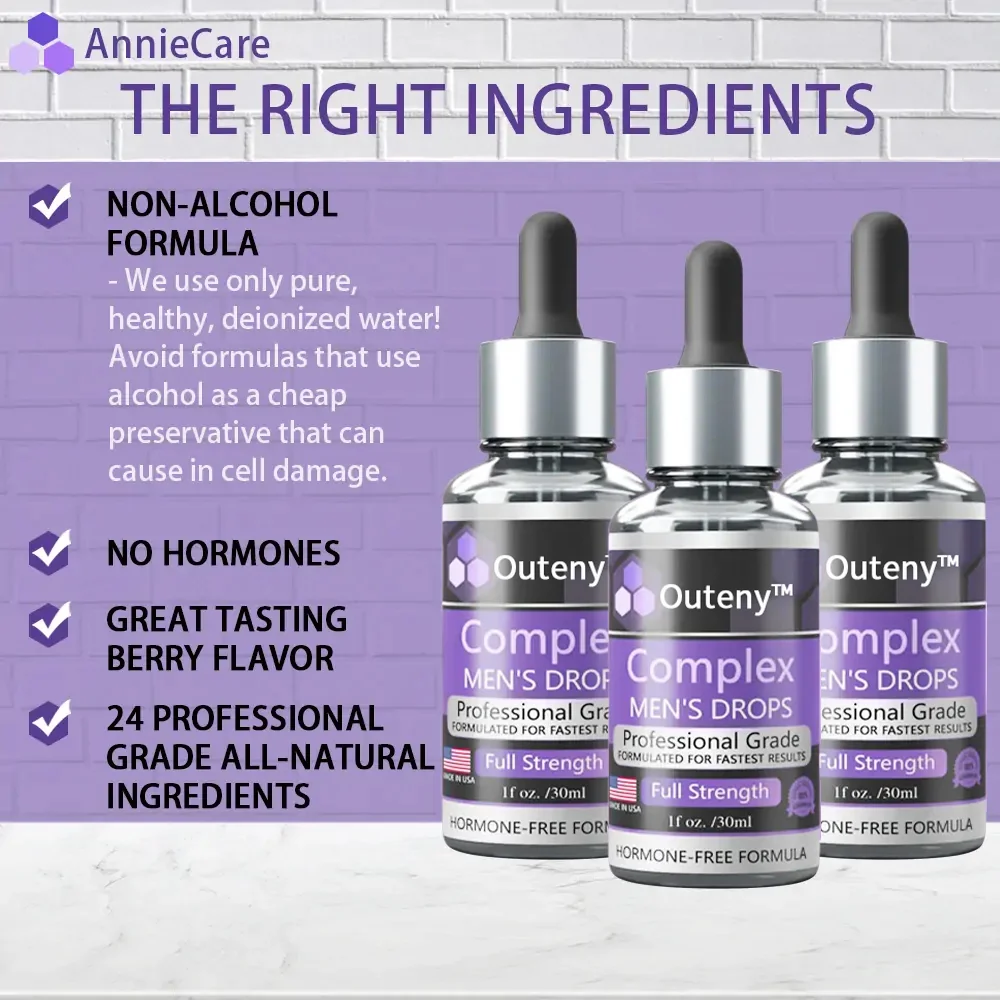 Fortunately, Outeny™ Complex Men's Drops targets the unique aspects of male strength, igniting the inner beast while fulfilling the desires of partners. Elevate hormone levels within the body to new heights, leading her on a journey of joy and profound emotional connection, witnessing the remarkable transformation of the body. As a man who values the happiness of his partner, you now have the power to surprise her with the Complex Men's Drops —Secret Drops for Strong Men, unlocking the inner beast.
