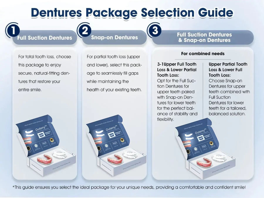 Outeny™ is committed to transforming lives with innovative dental solutions that improve both your physical comfort and emotional well-being. Experience the freedom and confidence that countless others have already embraced with the Outeny™ Premium Custom Silicone Denture Set. Join our growing community and discover how easy it can be to enjoy a radiant, confident smile every day!