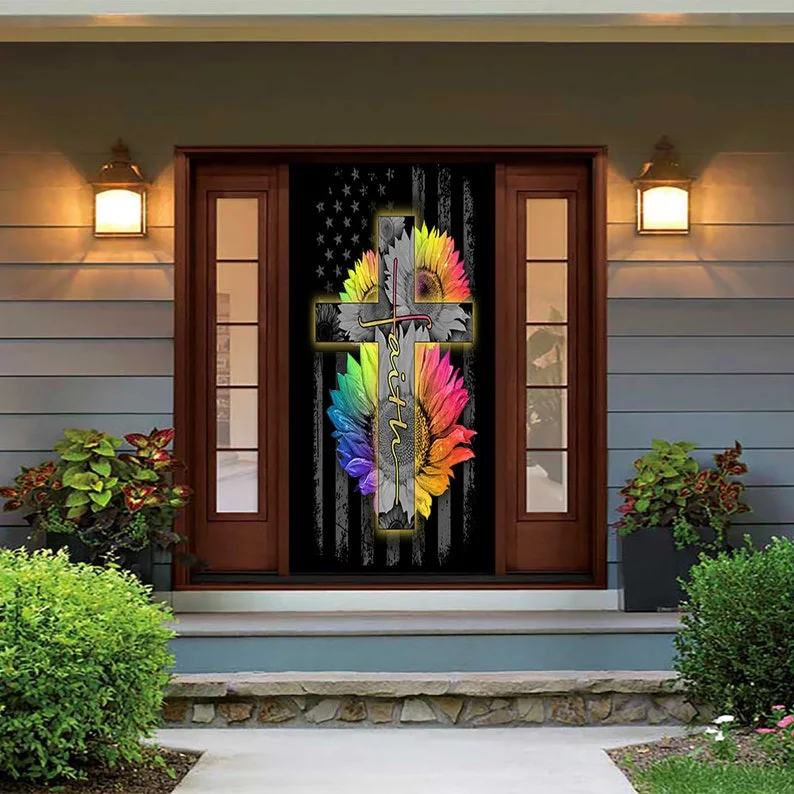 Two iconic symbols joined together to create this breathtaking. This fabric door wrap will look amazing hanging outside or inside this holiday season. Our fabric door covers take less than a minute to install.