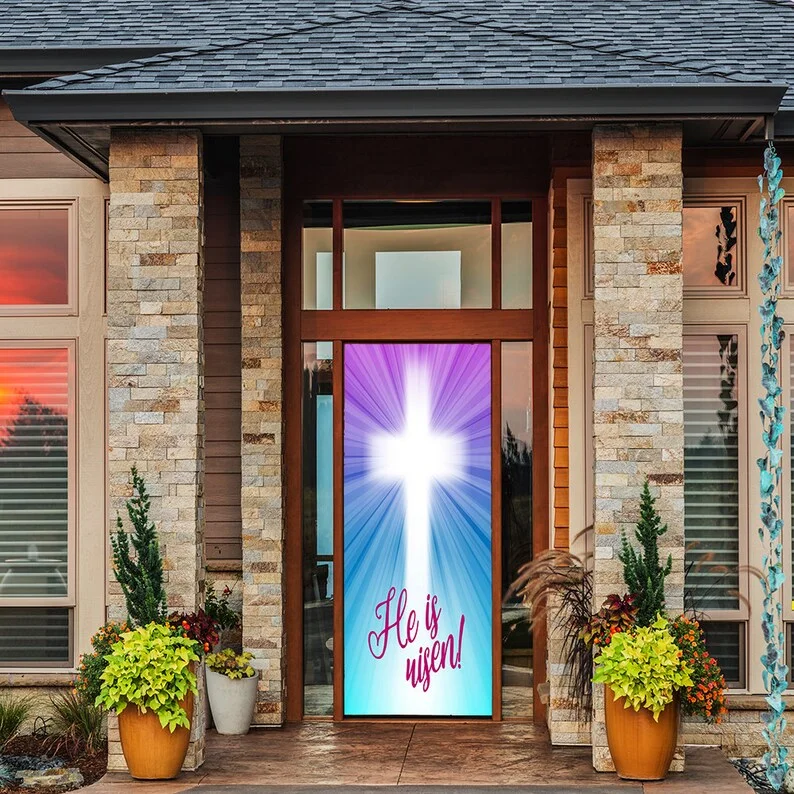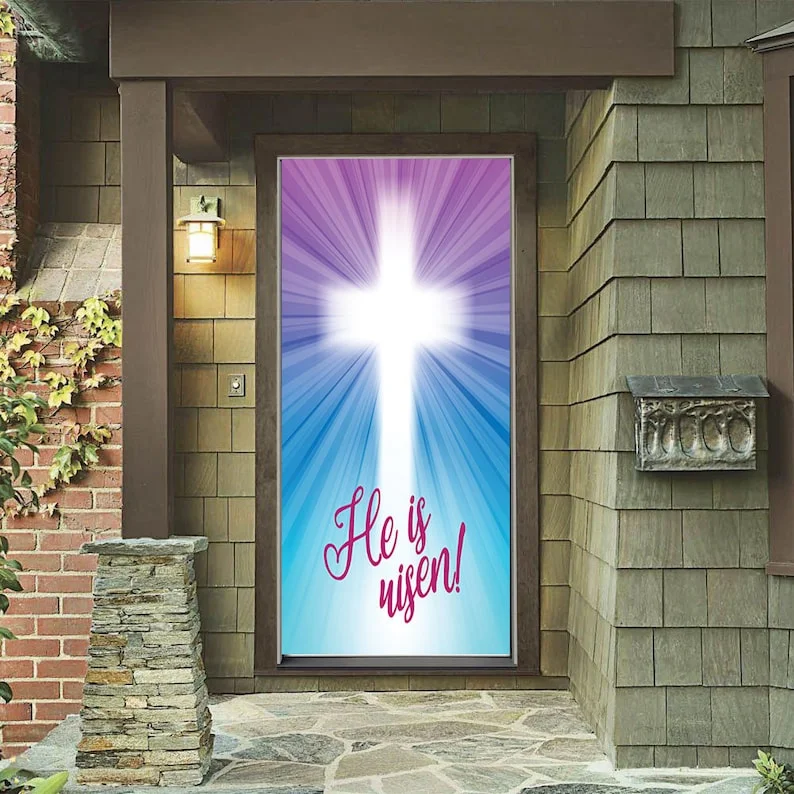 Keep the Easter wreath packed away this year and instead replace it with this authentic fabric door wrap. It will bring joy to your day just knowing that this is putting a smile on your neighbor's faces. Forget about hanging the spring door wreath this year and replace it with one of our Easter door hangers. This fabric door wrap will look amazing hanging outside or inside this holiday season. Our fabric door covers take less than a minute to install.