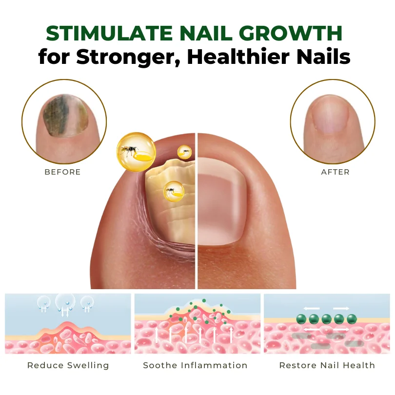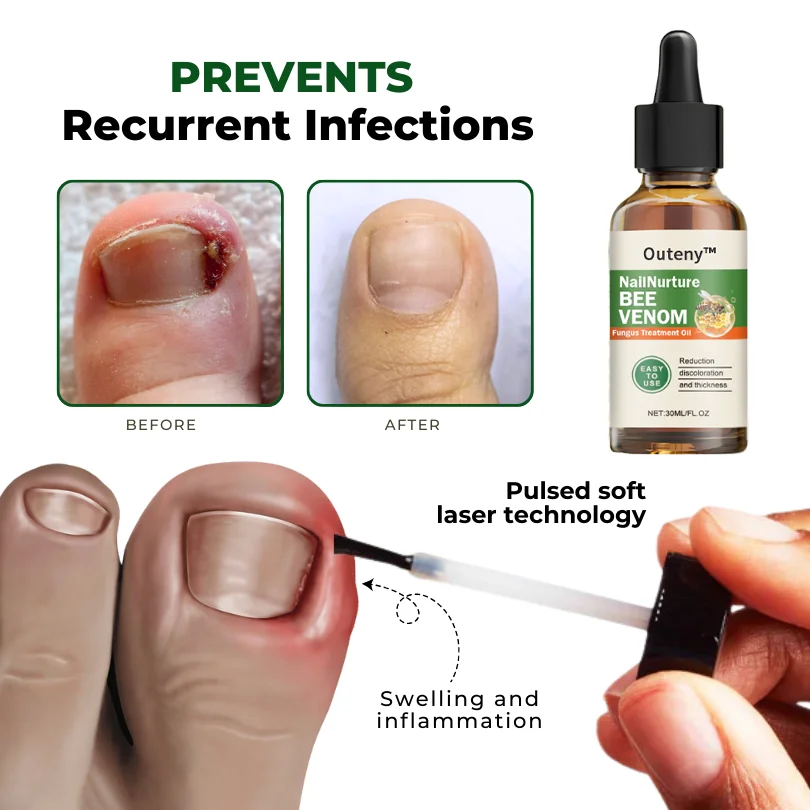Outeny™ NailNurture Bee Venom Fungus Treatment Oil effectively treats common nail conditions, including fungal infections, paronychia, and ingrown toenails, promoting healing and reducing pain. It also helps restore nail discoloration and strengthens brittle nails, encouraging healthier, stronger nails while improving their natural appearance.