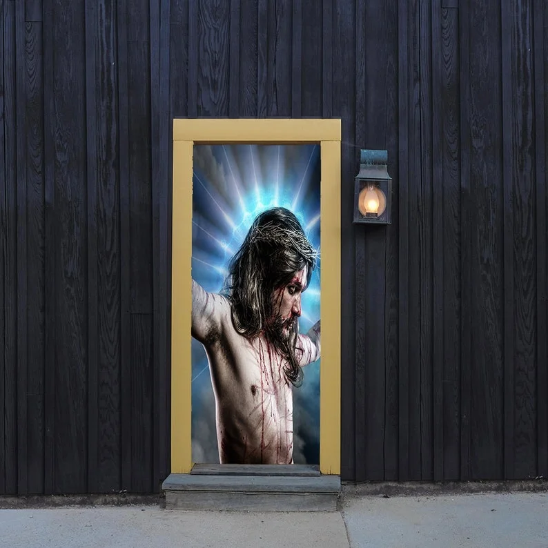 This powerful image of Christ is the real reason to celebrate Easter. You'll have the best time too, and the best door this Easter holiday with one of our unique fabric door covers. This fabric door wrap will look amazing hanging outside or inside this holiday season. Our fabric door covers take less than a minute to install.