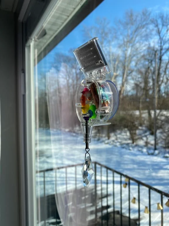 A rainbow is no everyday miracle, you can't wish one into being; only the sun can do that. So imagine the cozy warmth of seeing one show up in a flicker, seemingly out of nowhere, to highlight a phrase on the page you've been reading, or paint the face of your sleeping baby, or tantalize your grooming cat.