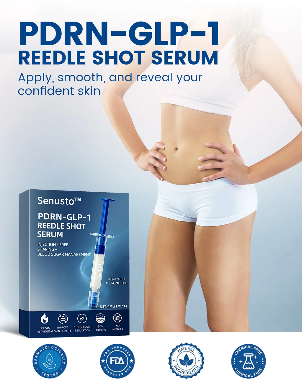As a retired teacher, my lifestyle slowed down, and my weight skyrocketed due to changes in diet and less physical activity. I discovered Senusto™ PDRN-GLP-1 Slimming & Blood Sugar Regulating Reedle Shot Serum on Facebook and decided to give it a try. After just a few days, I noticed a decrease in my appetite and felt a boost in my metabolism!
