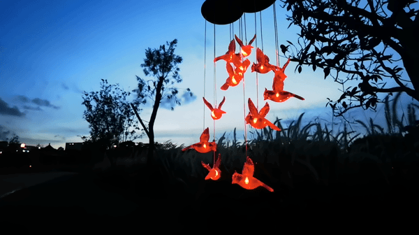 Our solar cardinal wind chimes will be both beautiful and peaceful to look at during the day as the birds floating in the wind! At night, they will shine and change various kinds of brilliant colours automatically.